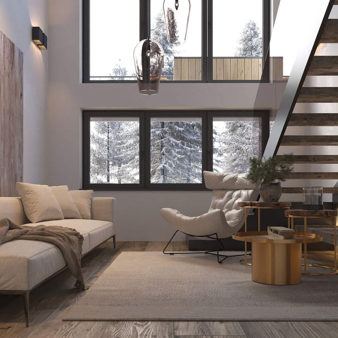 Het unieke design van dit 10-persoons Penthouse Chalet is absoluut spraakmakend en onderscheidend. Het appartement verdeeld zich over twee verdiepingen waarin de façade grotendeels van glas is voorzien. Deze wellness Maisonette heeft een vloeroppervlakte van ca. 149 m².